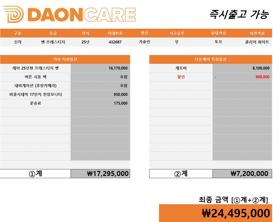 | 333Km | 2025년형 | 가솔린 | 자동 | 차대번호 432687 |