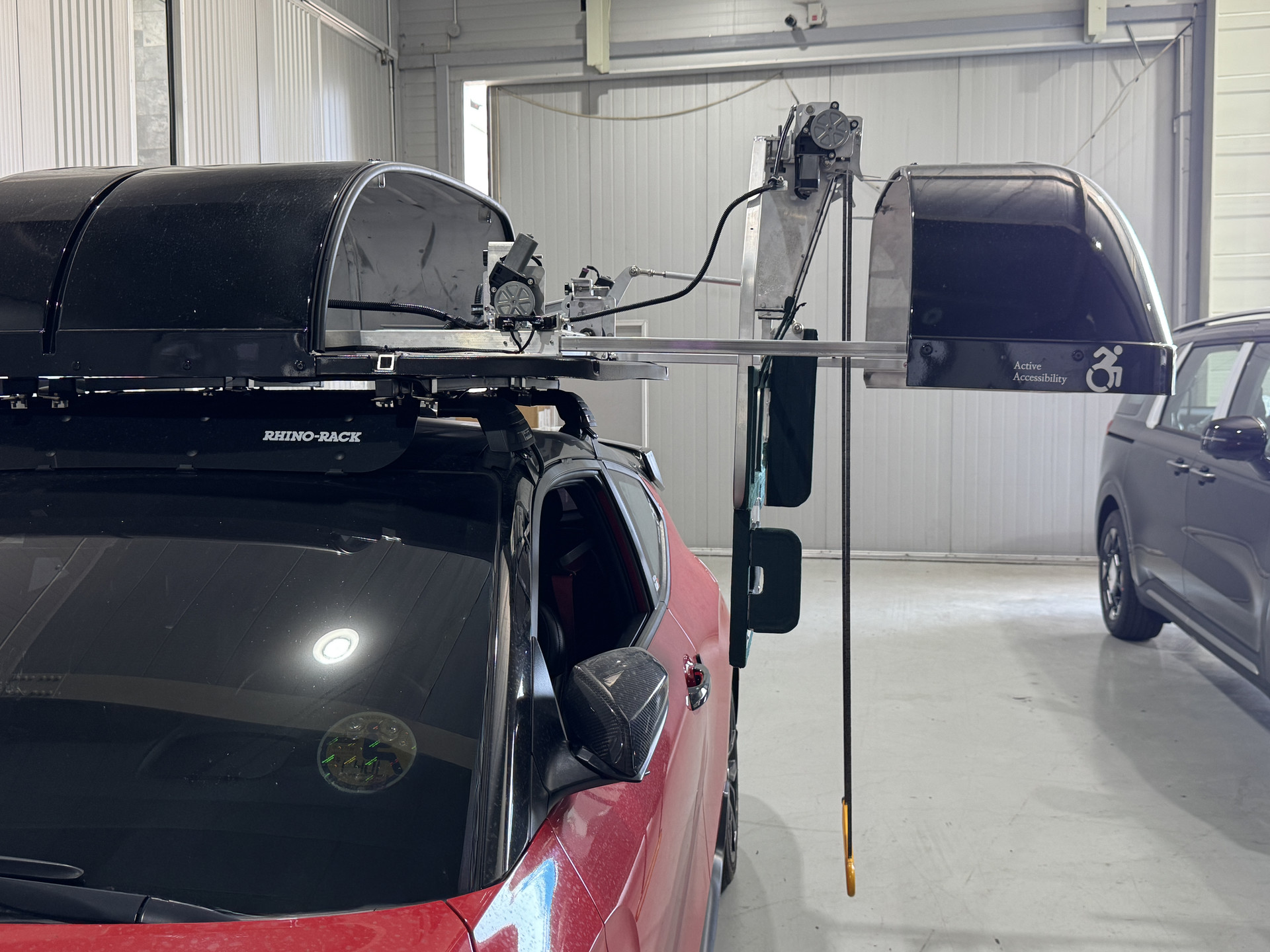 다온케어 탑퍼(Topper)는 휠체어 이용 자가 운전자를 위해 고안된 혁신적인 전자동 루프 수납 시스템입니다. 운전석으로 이동 후 휠체어를 접어 리프트에 걸어주기만 하면, 단 30초 만에 차량 지붕 위 전용 보관함으로 깔끔하게 수납됩니다. 무거운 휠체어를 싣기 위해 어깨를 혹사하거나 타인의 도움을 기다릴 필요 없이, 시동을 거는 순간부터 목적지까지 완전한 자유를 누리세요.